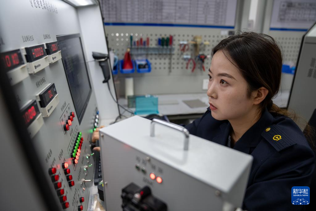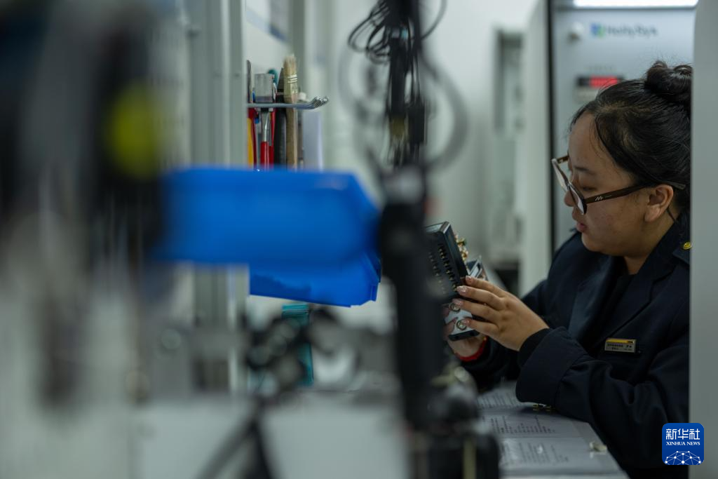 1月6日,拉薩基礎(chǔ)設(shè)施段電務(wù)專修車間繼電器檢修工區(qū)的信號(hào)工德吉卓瑪在檢測(cè)繼電器。新華社記者 旦增尼瑪曲珠 攝