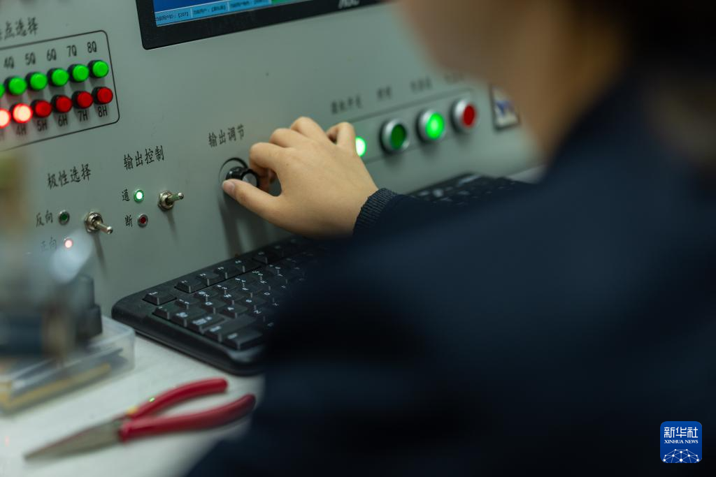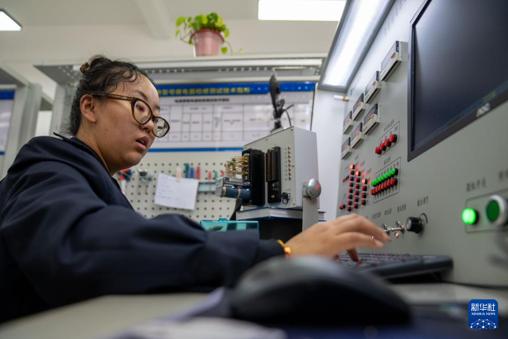 1月6日,拉薩基礎(chǔ)設(shè)施段電務(wù)專修車間繼電器檢修工區(qū)的信號(hào)工路東燕在調(diào)試檢測(cè)臺(tái)。新華社記者 旦增尼瑪曲珠 攝