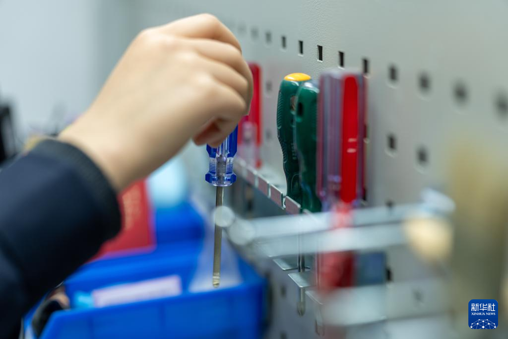 1月6日,拉薩基礎(chǔ)設(shè)施段電務(wù)專修車間繼電器檢修工區(qū)的信號(hào)工路東燕在拿取螺絲刀。新華社記者 旦增尼瑪曲珠 攝