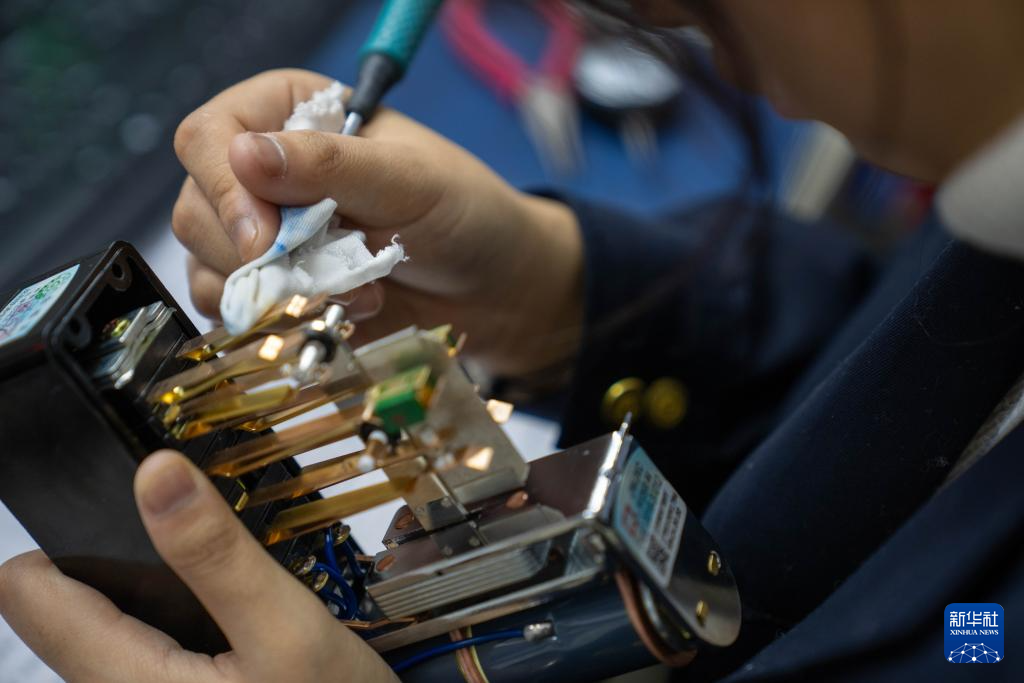 1月6日,拉薩基礎(chǔ)設(shè)施段電務(wù)專修車間繼電器檢修工區(qū)的信號(hào)工路東燕在擦拭繼電器節(jié)點(diǎn)。新華社記者 旦增尼瑪曲珠 攝