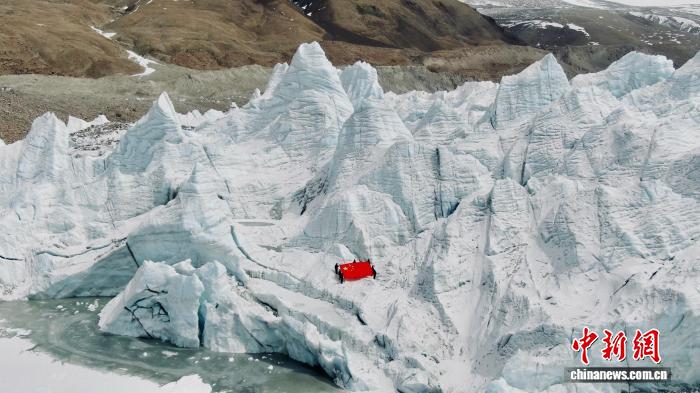 圖為普瑪江塘邊境派出所民警開展冰川巡邏。徐道超 攝