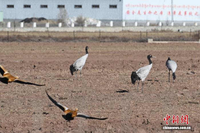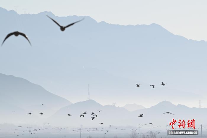 1月19日,西藏拉薩市林周縣黑頸鶴自然保護(hù)區(qū)內(nèi),成群候鳥(niǎo)在此越冬棲息。這里的濕地、農(nóng)田與水庫(kù)構(gòu)成絕佳棲息地,黑頸鶴、斑頭雁、赤麻鴨等萬(wàn)余只候鳥(niǎo)在此集結(jié)。它們或凌空盤旋、或田間覓食,繪就高原生態(tài)畫(huà)卷。中新社記者 貢嘎來(lái)松 攝