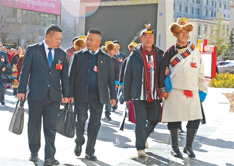 山南市政協(xié)委員參會結(jié)束后走出會場。