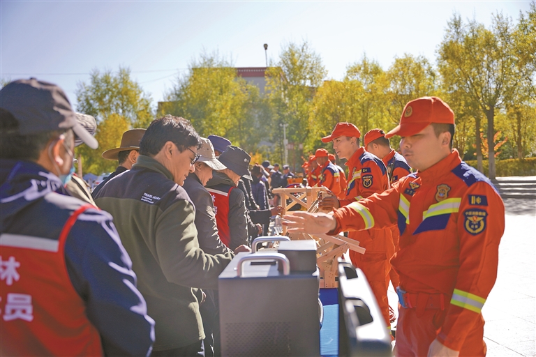 在資料發(fā)放環(huán)節(jié),大隊宣傳員向過往群眾遞發(fā)《森林防火條例》摘要手冊及防災(zāi)減災(zāi)科普折頁等宣傳資料200余份,確保防災(zāi)政策、防火常識廣覆蓋、無遺漏;案例講解環(huán)節(jié),宣傳人員結(jié)合周邊近年防災(zāi)減災(zāi)典型案例與森林火災(zāi)真實事件,用漢藏雙語清晰解讀違規(guī)用火、災(zāi)害應(yīng)對不當(dāng)?shù)膰?yán)重后果,明確違反相關(guān)規(guī)定的法律責(zé)任,讓群眾直觀感受到防災(zāi)減災(zāi)與防火的緊迫性;裝備展示區(qū),專業(yè)救援車輛、滅火器材及救援裝備逐一陳列,大隊宣傳員細(xì)致講解各類裝備的用途與操作原理,既充分展現(xiàn)應(yīng)急救援實力,也有效加深群眾對防災(zāi)減災(zāi)、防火救援工作的認(rèn)知;有獎問答與答疑環(huán)節(jié),通過趣味互動充分激發(fā)群眾參與熱情,針對家庭用火安全、日常防災(zāi)避險、林區(qū)作業(yè)防火等常見疑問,宣傳員耐心解答、細(xì)致指導(dǎo),做到有問必答、解惑到位。