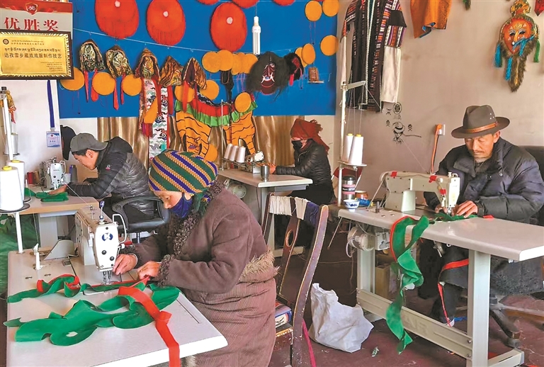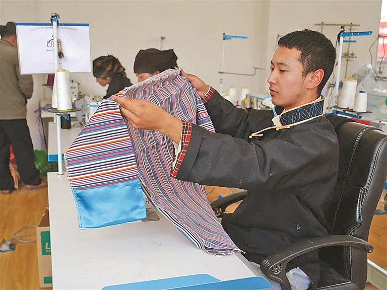 技藝的創(chuàng)新與市場的拓展,也為家鄉(xiāng)的農(nóng)牧民群眾帶來了實實在在的收益。始終心系群眾的米瑪堅才,系統(tǒng)培訓了18名農(nóng)牧民,使他們從零基礎慢慢成長為熟練掌握藏戲服飾制作技藝的手工藝人,不用背井離鄉(xiāng)就能在家門口掙錢。“以前靠種地過日子,收入不穩(wěn)定,現(xiàn)在在合作社有固定收入,一年下來能掙3萬多元,顧家掙錢兩不誤,特別知足?!焙献魃绲霓r(nóng)牧民員工談起這份工作,臉上滿是笑意。