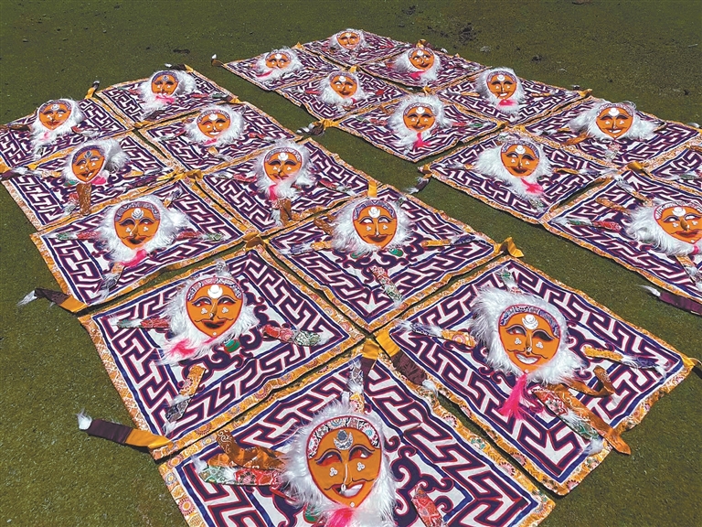 作為藏戲藝術的重要載體,色彩繽紛的藏戲服飾、神秘獨特的面具常讓人眼前一亮,但其制作技藝用料考究、形制莊重,極其考驗匠人的功底。拉薩市達孜區(qū)雪鄉(xiāng)扎西崗村的阿古家族,是當?shù)赜忻牟貞蚍椫谱魇兰?,憑借精湛手藝傳承五代,有著數(shù)百年的歷史。