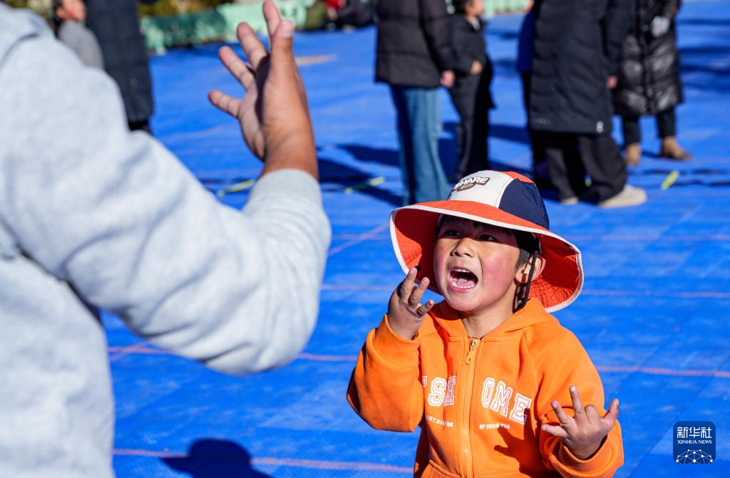 1月22日,在拉薩市全民健身體彩公園內(nèi),殘障兒童在家長陪同下參加“陽光殘障兒童公益興趣班”體適能訓(xùn)練課程。新華社記者 丁增尼達(dá) 攝