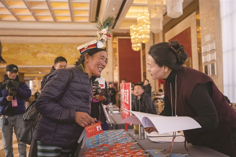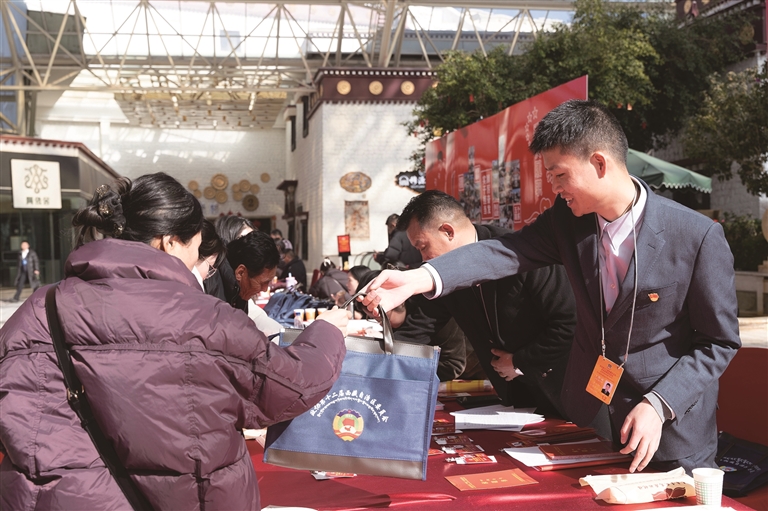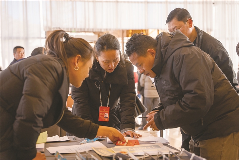 在政協(xié)委員報到處,工作人員提前就位,細致講解會議安排,用貼心服務為委員們履職保駕護航。