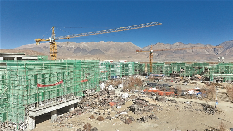 圖為定日縣長(zhǎng)所鄉(xiāng)完全小學(xué)重建現(xiàn)場(chǎng)。記者 馬曉艷 楊子彥 旦增嘎瓦 攝