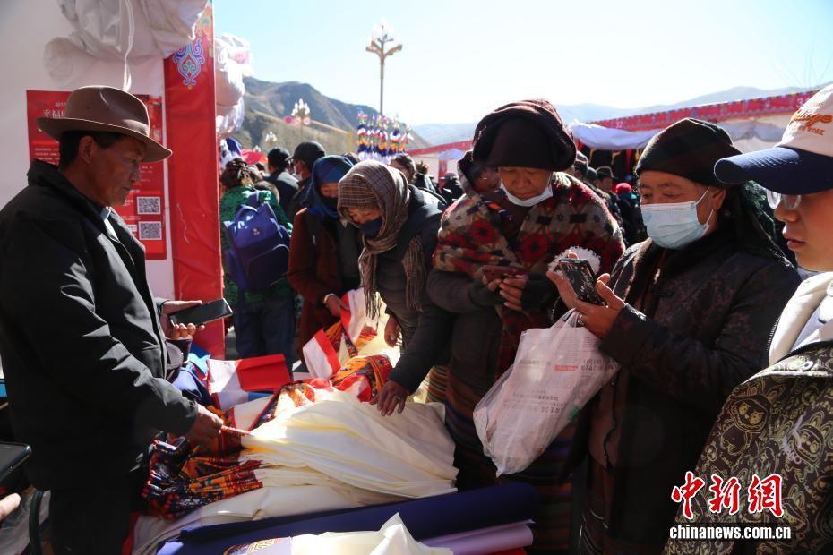 2月2日,西藏自治區(qū)山南市瓊結(jié)縣2026年“幸福瓊結(jié)·優(yōu)享年貨”促消費暨展銷活動在朗熱大道啟幕,為春節(jié)、藏歷新年預(yù)熱添彩。本次活動由瓊結(jié)縣投入200萬元人民幣打造,為期7天,吸引103家商戶入駐,其中73家為本地商戶,帶來150余種特色商品,高原農(nóng)產(chǎn)、藏式手工藝品、傳統(tǒng)年貨齊聚現(xiàn)場,盡顯藏地年味。活動推出農(nóng)業(yè)銀行掌銀立減優(yōu)惠,民眾無需領(lǐng)券即可享實惠,現(xiàn)場還設(shè)置咨詢臺與宣傳點,切實保障消費安全。圖為民眾在選購香布(藏式建筑門窗上裝飾的五彩布料)。倫珠澤仁 攝