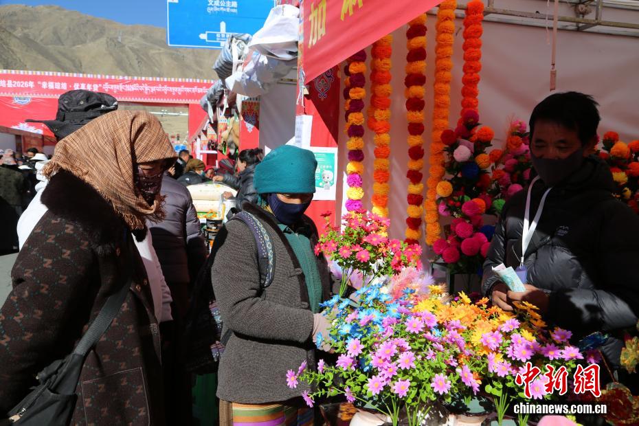 2月2日,西藏自治區(qū)山南市瓊結(jié)縣2026年“幸福瓊結(jié)·優(yōu)享年貨”促消費暨展銷活動在朗熱大道啟幕,為春節(jié)、藏歷新年預(yù)熱添彩。本次活動由瓊結(jié)縣投入200萬元人民幣打造,為期7天,吸引103家商戶入駐,其中73家為本地商戶,帶來150余種特色商品,高原農(nóng)產(chǎn)、藏式手工藝品、傳統(tǒng)年貨齊聚現(xiàn)場,盡顯藏地年味?;顒油瞥鲛r(nóng)業(yè)銀行掌銀立減優(yōu)惠,民眾無需領(lǐng)券即可享實惠,現(xiàn)場還設(shè)置咨詢臺與宣傳點,切實保障消費安全。圖為民眾在選購塑料花。倫珠澤仁 攝