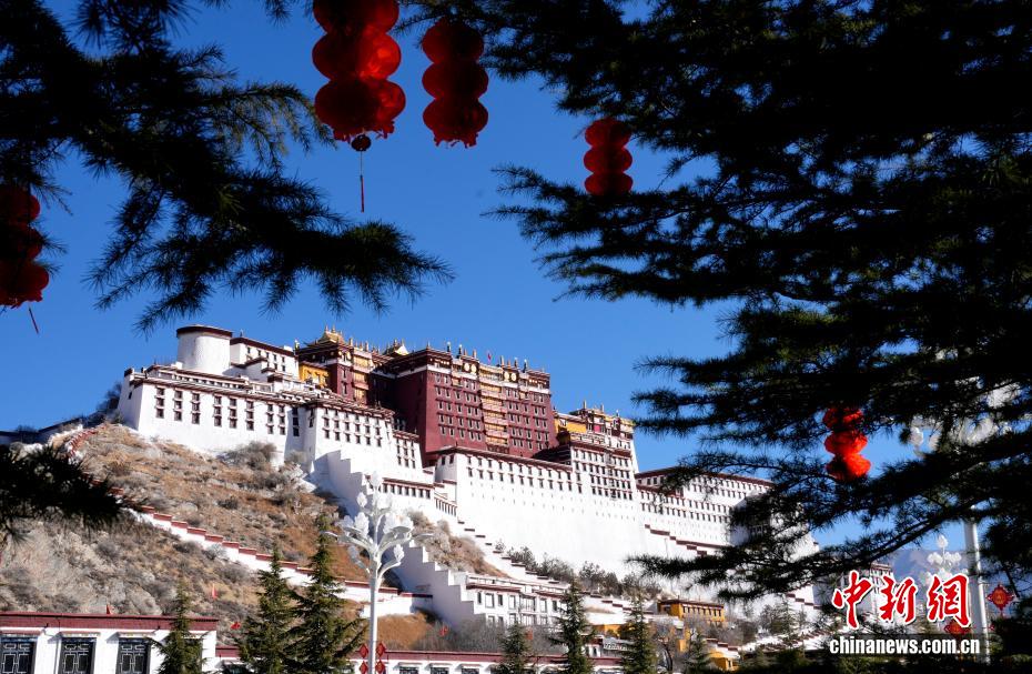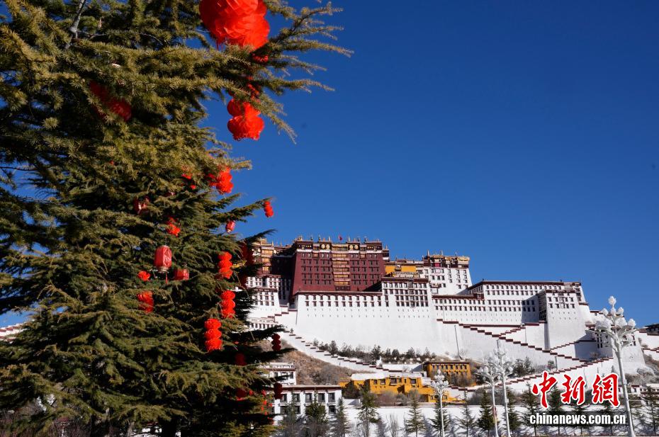 2月3日,西藏拉薩布達(dá)拉宮廣場,紅燈籠裝點(diǎn)節(jié)日氛圍。隨著春節(jié)、藏歷新年的臨近,拉薩城區(qū)大街小巷被精心裝點(diǎn),年味愈發(fā)濃郁。中新社記者 李林 攝
