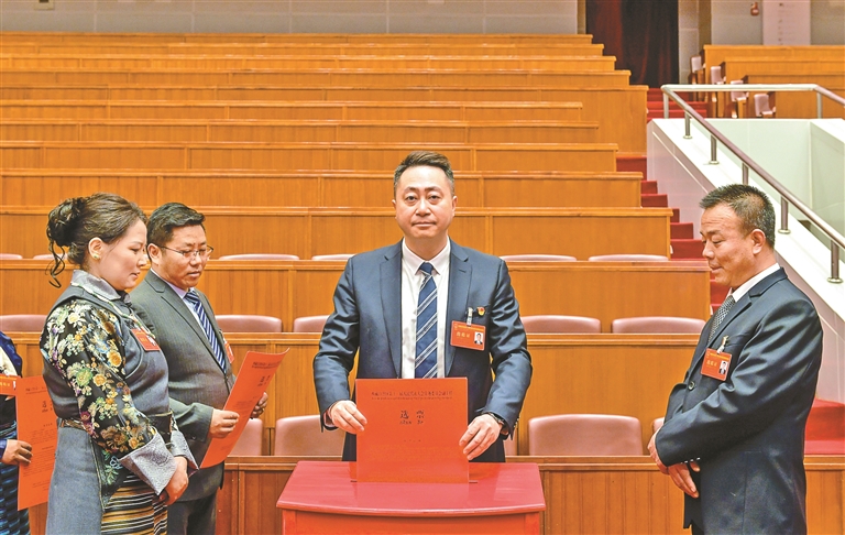 人大代表正在投票。記者 丹增群培 攝
