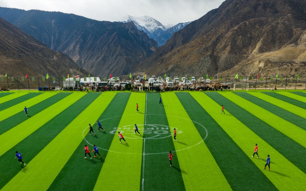 夢想終有回響。2024年,洛隆縣與對(duì)口支援企業(yè)中國遠(yuǎn)洋海運(yùn)集團(tuán)一道在土球場附近,投資200余萬元建成一座占地8000余平方米的11人制標(biāo)準(zhǔn)足球場,當(dāng)年12月順利竣工,被當(dāng)?shù)厝擞H切喚作“云上球場”。