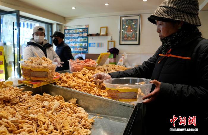 隨著春節(jié)、藏歷新年日益臨近,西藏拉薩街頭年味漸濃。4日,在拉薩市城關(guān)區(qū)林廓北路等路段,沿街不少商店都在制作、售賣(mài)卡塞。