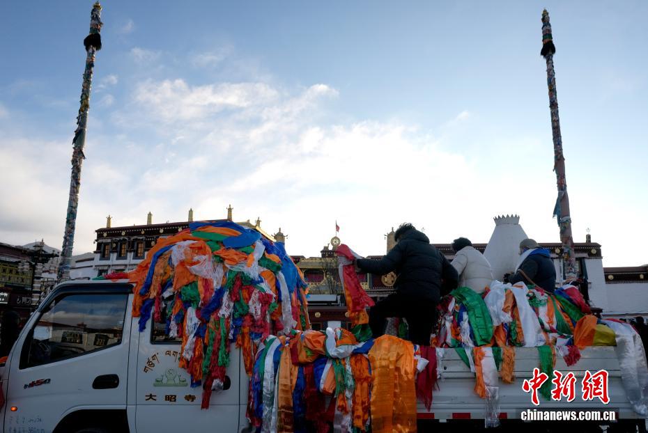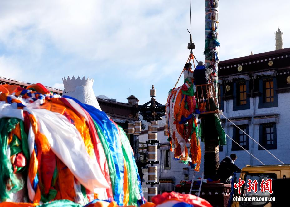 【新春見聞】西藏大昭寺經(jīng)幡柱“換裝”迎藏歷新年