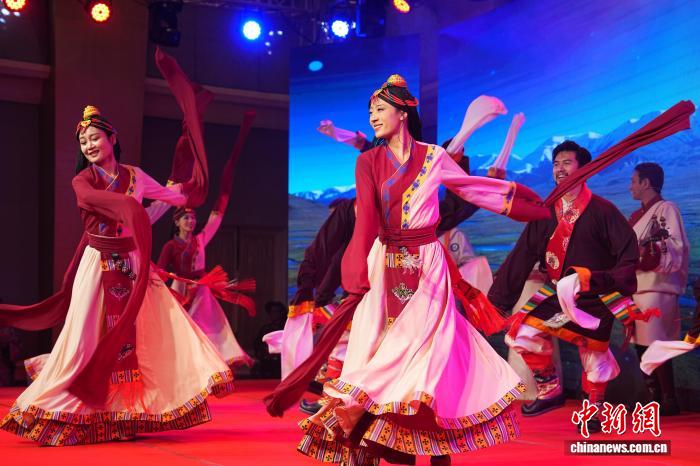 2026年2月7日,中國駐尼泊爾大使館在加德滿都舉辦藏歷火馬新年招待會,青海省果洛州民族歌舞團為旅尼藏胞帶來精彩演出。中新社記者 崔楠 攝