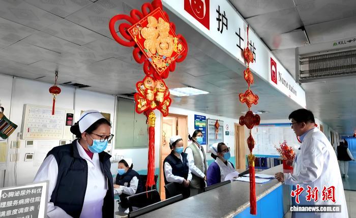 圖為正月初一,西藏自治區(qū)人民醫(yī)院泌尿外科主任樊華(右一)與當(dāng)值護(hù)士。貢桑拉姆 攝