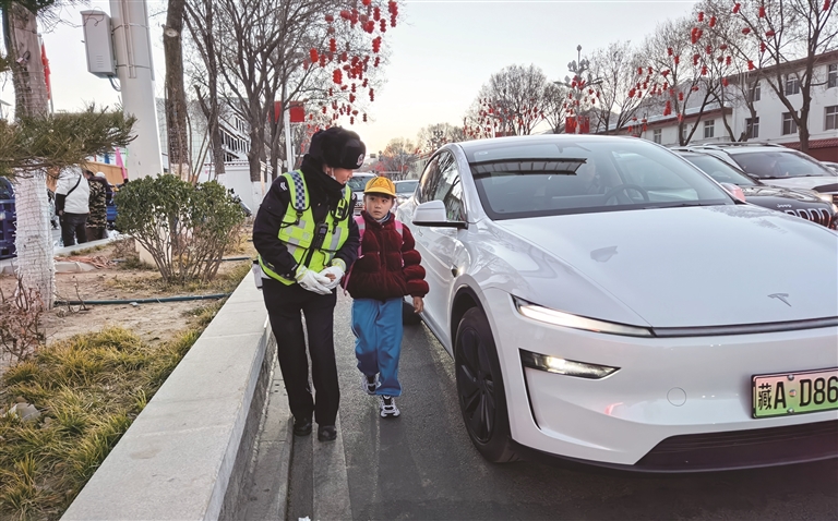 在拉薩市第一小學(xué)江蘇路分校門口,記者看到民警在校園門口斑馬線、十字路口等關(guān)鍵位置定崗定責(zé),配合學(xué)校老師和安保人員形成聯(lián)動(dòng)合力,引導(dǎo)學(xué)生排隊(duì)入校、安全通行。警燈閃爍、哨聲清脆,車流在民警的指揮下快速分流,原本繁忙的路段變得井然有序。家長(zhǎng)卓女士告訴記者:“每天上學(xué)、放學(xué)都能看到民警在學(xué)校門口守護(hù),過(guò)馬路有人管、停車有秩序,我們接送孩子都特別放心?!?/p>