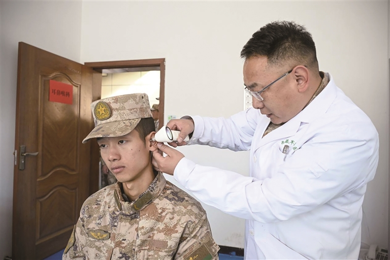 醫(yī)生為官兵進(jìn)行檢查。