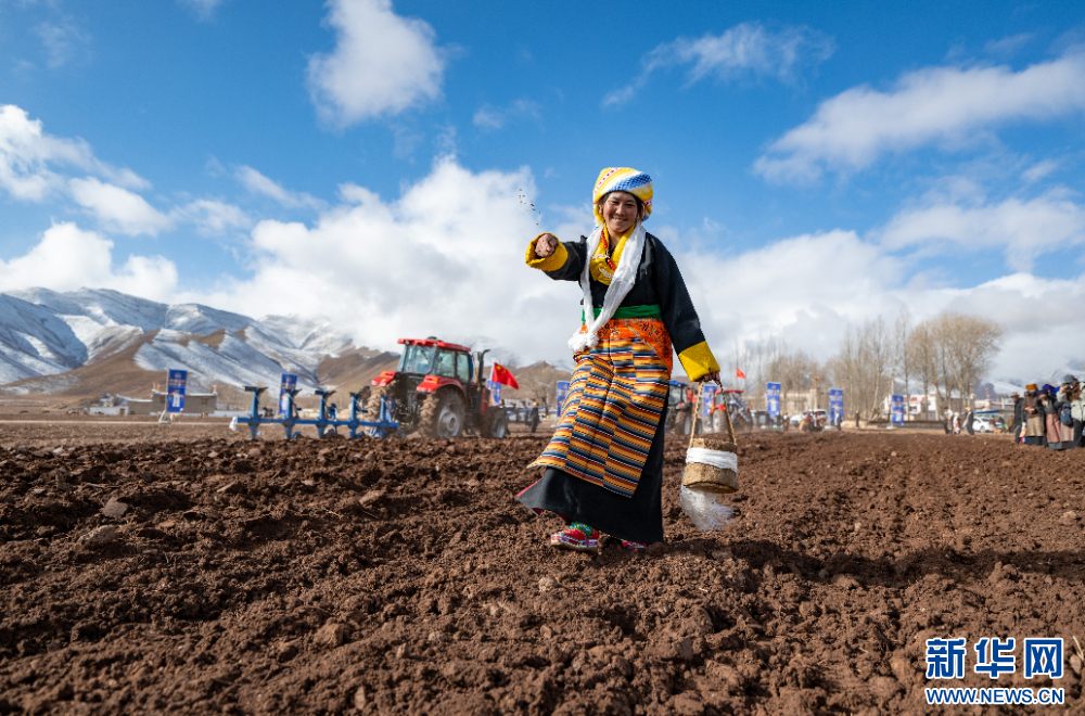 當(dāng)日,西藏自治區(qū)拉薩市林周縣春堆鄉(xiāng)春堆村群眾身著盛裝,按照傳統(tǒng)儀式,手捧青稞酒,在拉薩河谷舉行春耕儀式,播撒今春第一粒種子,祈福豐收。過去,“二牛抬杠”是當(dāng)?shù)貍鹘y(tǒng)的農(nóng)耕方式。如今,春堆村的農(nóng)機化率已達(dá)到100%。