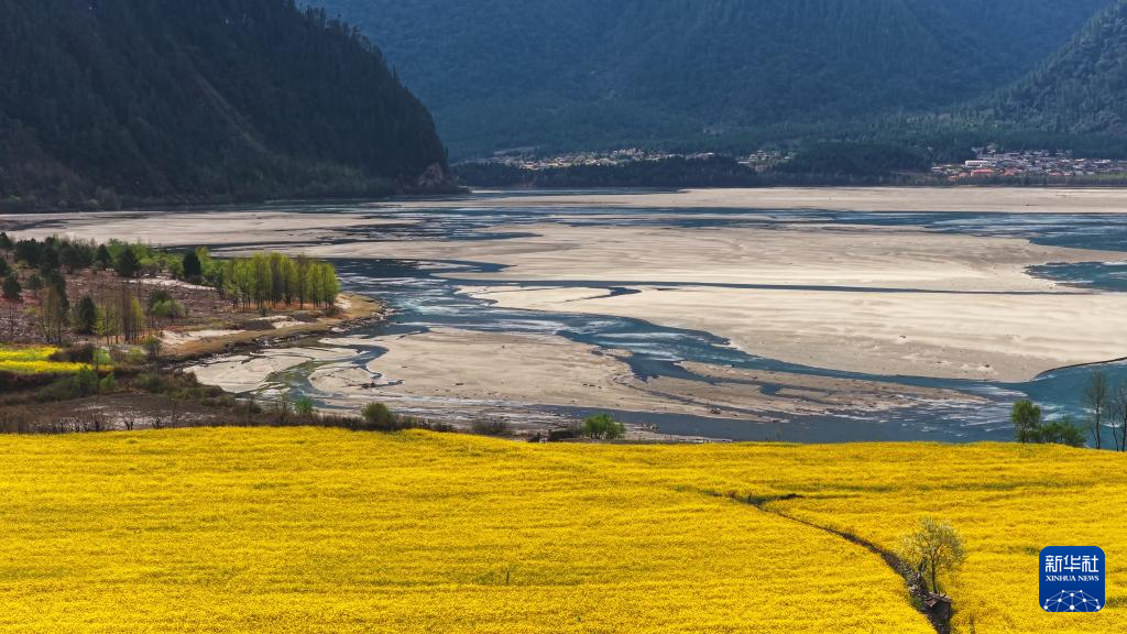 3月20日拍攝的西藏林芝市波密縣易貢鄉(xiāng)的油菜花田(無人機(jī)照片)。新華社記者 普布次仁 攝