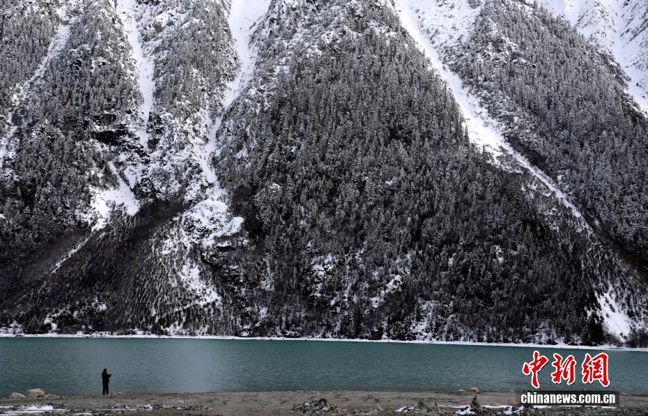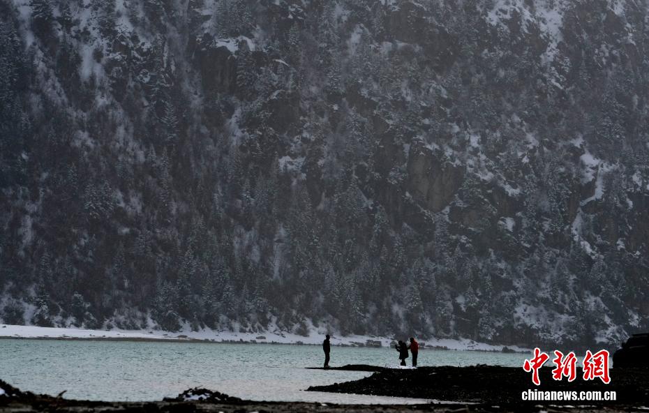 3月25日,游客拍攝西藏昌都然烏湖雪后景色。然烏湖位于西藏昌都市八宿縣然烏鎮(zhèn)境內(nèi),是山體滑坡或泥石流堵塞河道而形成的堰塞湖。雪后然烏湖湖水如翠,美如畫卷。中新社記者 李林 攝