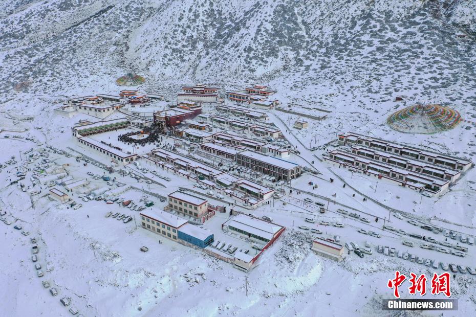 圖為雪后邦榮寺全景。貢嘎來松 攝