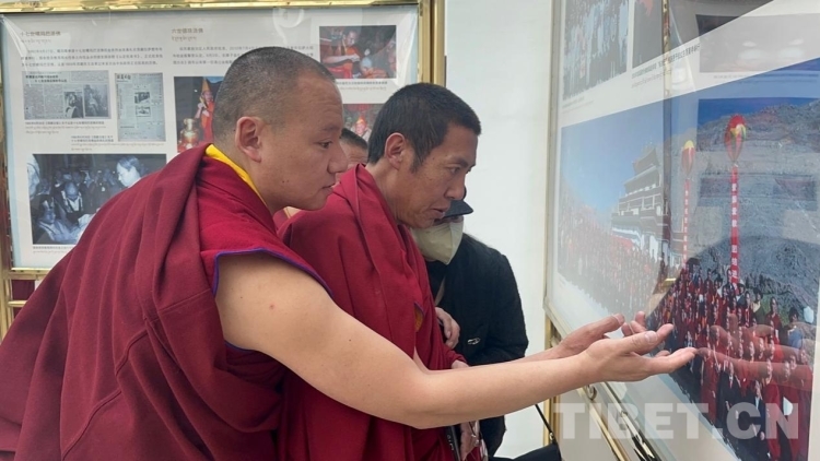 圖為經(jīng)師學(xué)員參觀藏傳佛教活佛轉(zhuǎn)世專(zhuān)題展 攝影:德吉卓瑪