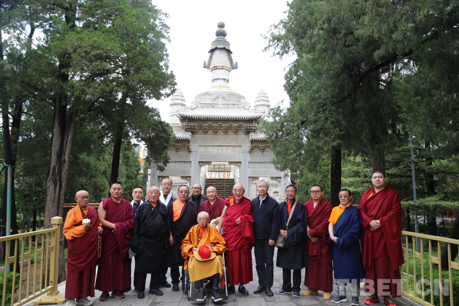 圖為考察團(tuán)在北京西黃寺清凈化城塔前合影
