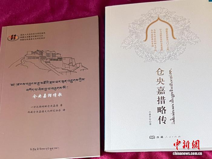 圖為西藏倉央嘉措文化研究協(xié)會翻譯及出版的倉央嘉措相關(guān)作品。(西藏倉央嘉措文化研究協(xié)會供圖)