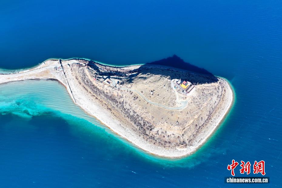1月17日,西藏羊卓雍錯日托寺風光。日托寺位于羊卓雍錯東北岸一半島上,是半島上僅有的建筑,形成了“古剎”“孤寺”景觀,近年在網絡平臺持續(xù)火熱,成為游客打卡西藏的熱門地標。中新社記者 貢嘎來松 攝(無人機照片)