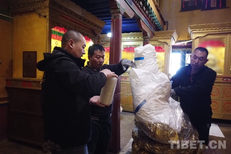 圖為敏珠林寺僧人對(duì)照詳單核查文物 攝影:張宇