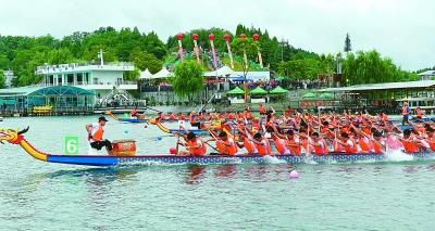 在四川省綿陽市舉行的第七屆綿陽(仙海)端午文化旅游節(jié)龍舟比賽。 新華社記者 陳地?cái)z
