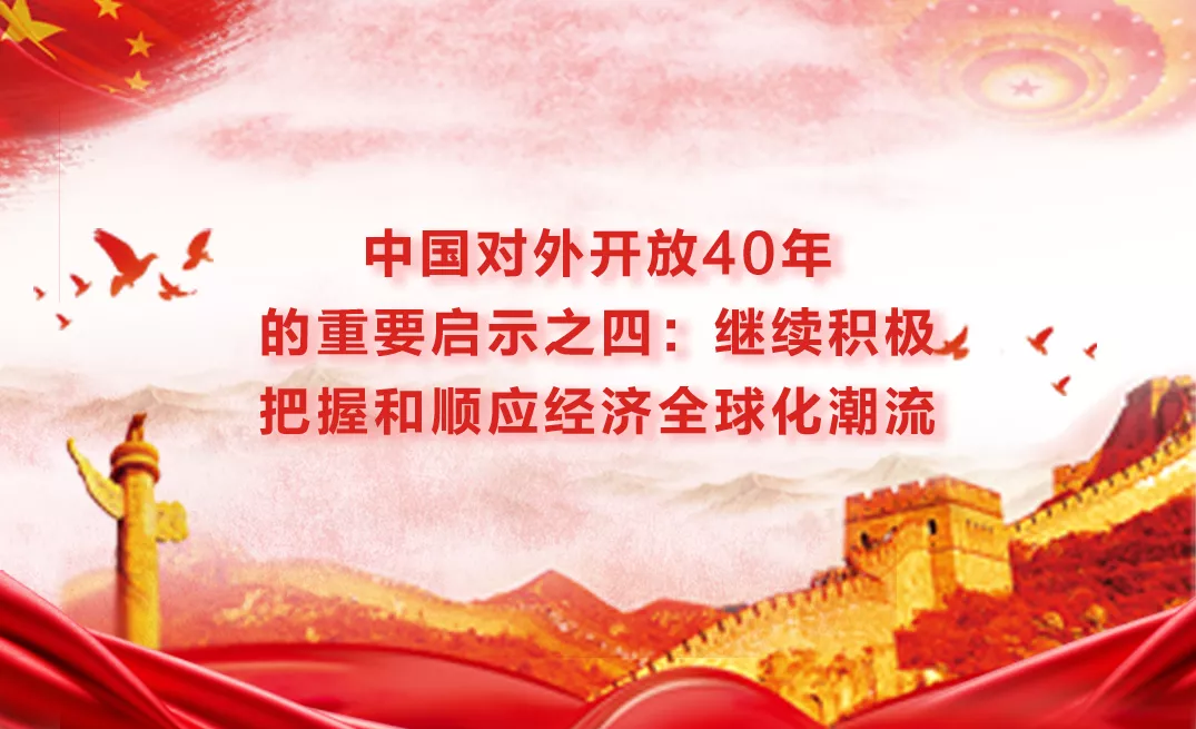 【編者按】經濟全球化是不可逆轉的歷史大勢,為世界經濟發(fā)展提供了強勁動力。改革開放40年,中國把握和順應經濟全球化歷史大勢,在開放中探索,在開放中奮進,逐步實現(xiàn)從“趕上時代”到“引領時代”的偉大跨越。在慶祝改革開放40周年之際,為了深刻總結中國對外開放40年重要啟示,中國理論網(wǎng)精心推出《繼續(xù)積極把握和順應經濟全球化潮流》一文,以饗讀者。