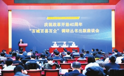 全國(guó)社科系統(tǒng)數(shù)千名專家學(xué)者深入100個(gè)縣區(qū)、100個(gè)城市和100個(gè)企業(yè)開展慶祝改革開放40周年大調(diào)研,取得豐碩成果。圖為成果座談會(huì)現(xiàn)場(chǎng)。中國(guó)社會(huì)科學(xué)院科研局供圖