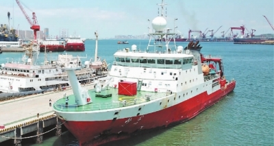 堅持和發(fā)展中國特色社會主義,實現(xiàn)中華民族偉大復興,必須堅定不移貫徹科教興國戰(zhàn)略和創(chuàng)新驅(qū)動發(fā)展戰(zhàn)略,堅定不移走科技強國之路。圖為靠泊在山東青島母港的“科學”號準備解纜起航。