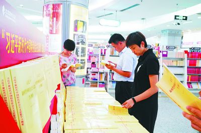 為配合“不忘初心、牢記使命”主題教育,北京圖書大廈專門設(shè)立《習(xí)近平新時(shí)代中國特色社會(huì)主義思想學(xué)習(xí)綱要》圖書專臺(tái),連日來深受讀者喜愛。圖為7月25日,讀者正在認(rèn)真閱讀《習(xí)近平新時(shí)代中國特色社會(huì)主義思想學(xué)習(xí)綱要》一書。本報(bào)記者 閆匯芳攝/光明圖片