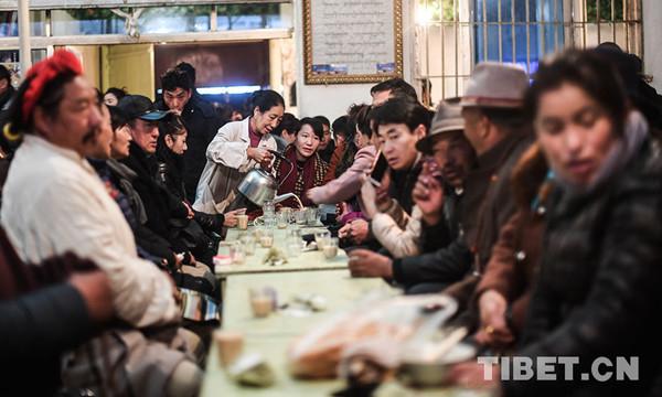 圖為西藏拉薩八廓街老甜茶館里喝早茶的市民。攝影:普布扎西