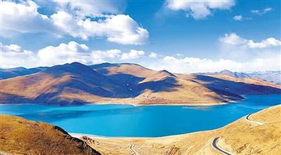 圖為水平如鏡、清澈明麗的羊卓雍錯(cuò)宛如一塊翠玉落人間,是高原水生態(tài)系統(tǒng)得到良好保護(hù)的典型代表。劉楓 次珍 攝