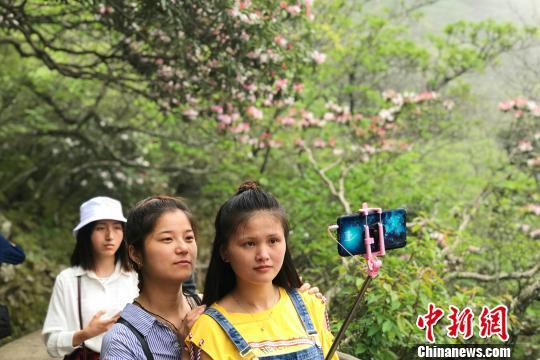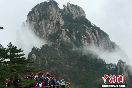 “五一”小長(zhǎng)假期間,游客在黃山風(fēng)景區(qū)拍照留念。 侯晏 攝