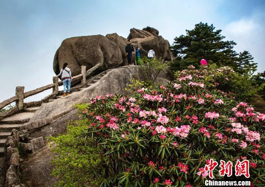 “五一”小長(zhǎng)假期間,正值黃山杜鵑盛花期,綻放的杜鵑花與該景區(qū)奇松怪石相映成趣。 葉永清 攝