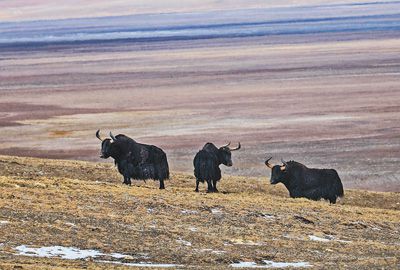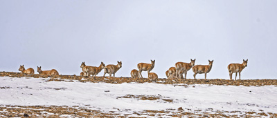 雙湖縣2/3的國土面積是“無人區(qū)”,禁止放牧、旅游等人類活動(dòng)。這塊連說話都喘粗氣的“禁區(qū)”,卻是野生動(dòng)物真正的樂園。據(jù)雙湖縣森林公安局局長古熱次仁介紹,生活在雙湖境內(nèi)的國家一級(jí)保護(hù)動(dòng)物藏羚羊有10萬頭左右、野牦牛近2萬頭。