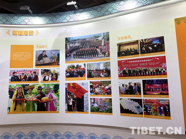 隨后,在講解員的帶領下,觀眾來到“大美青?!轮袊闪?0周年青海民族自治地方發(fā)展成就展”海東市主題館,參觀了由“幸福海東”“美麗海東”“和諧海東”三大板塊組成的圖文展覽。
