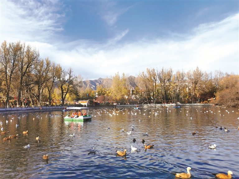 冬日的西藏拉薩市宗角祿康公園里,遠(yuǎn)山若描,游人如織,湖面上眾多前來越冬的水鳥盡情嬉戲。藍(lán)天白云碧水,呈現(xiàn)出一道生動(dòng)的冬日拉薩生態(tài)美景。[詳細(xì)] -