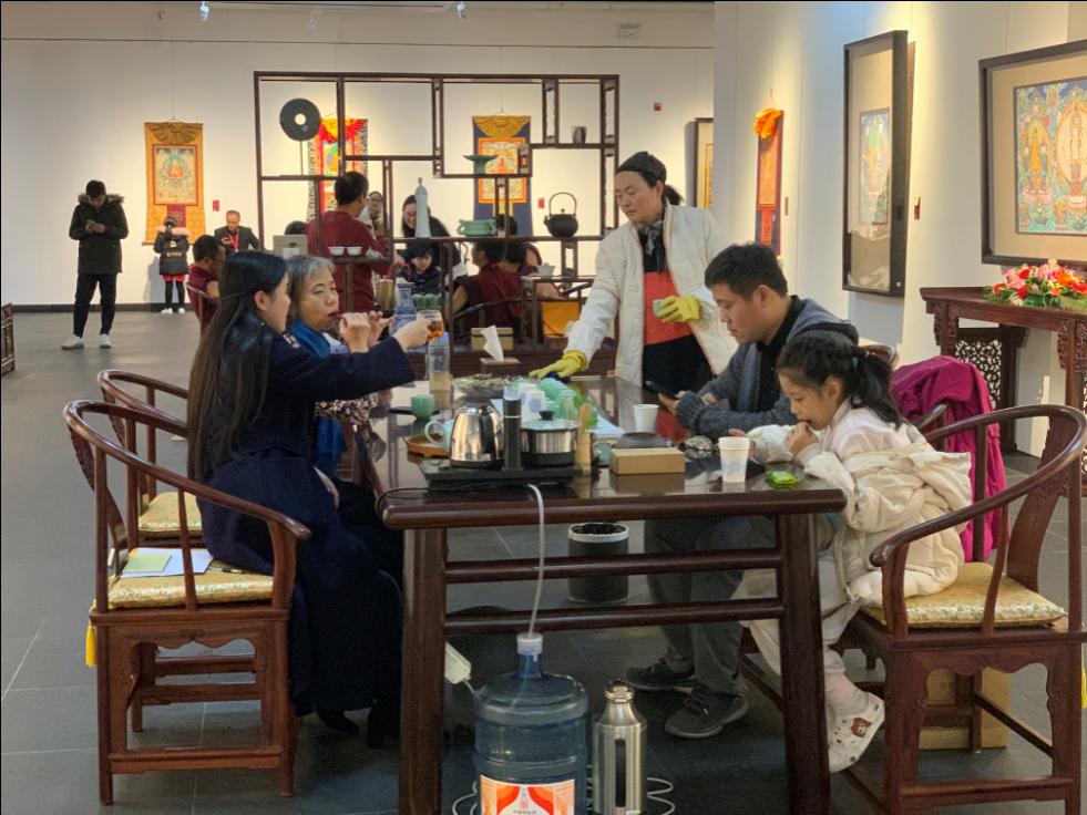 本次展覽以飲藏茶、品藏香、觀壇城、賞唐卡為主題,從多角度展示了我國藏族藝術(shù)源流,探討了藏文化的豐富內(nèi)涵。現(xiàn)場共計300余位嘉賓參加活動。