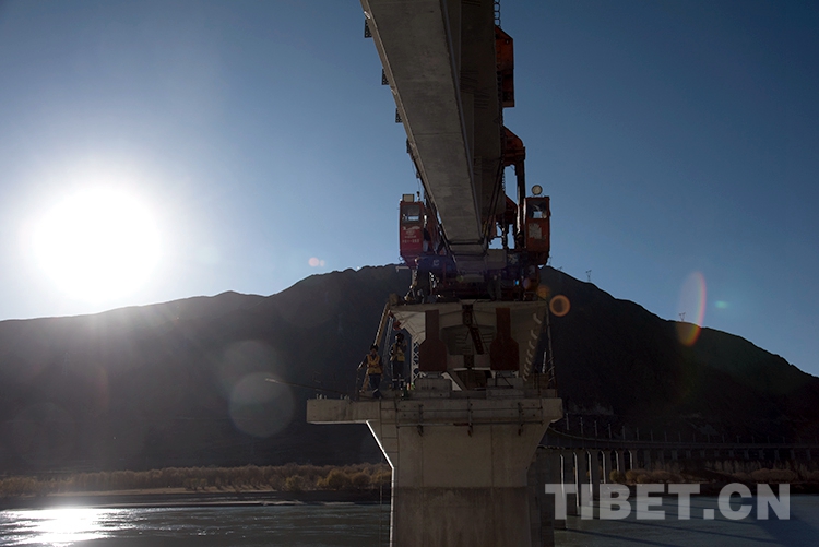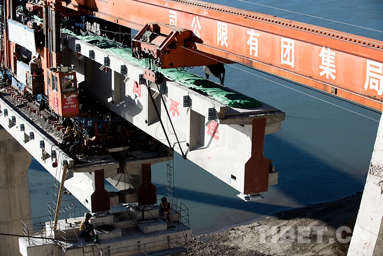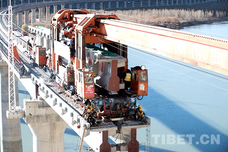 中國(guó)西藏網(wǎng)訊 12月1日,伴隨著架橋機(jī)的轟鳴聲,一排排工程軌排平穩(wěn)有序地落在橋梁上,由中鐵十一局承建的川藏鐵路拉薩至林芝段順利鋪架至西藏自治區(qū)山南市桑日縣絨鄉(xiāng)雅魯藏布江特大橋。這座特大橋的鋪通是川藏鐵路拉薩至林芝段第二次跨越雅魯藏布江,鋪通后距離桑日車站將不足2公里,為鋪架至桑日車站打下最后的堡壘。