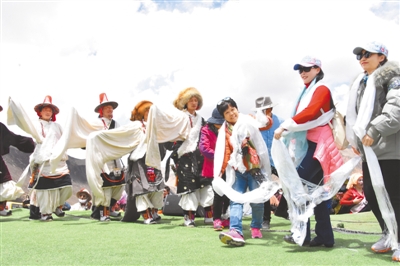 當雄蟲草節(jié)上,游客與牧民一起載歌載舞。劉斯宇 攝