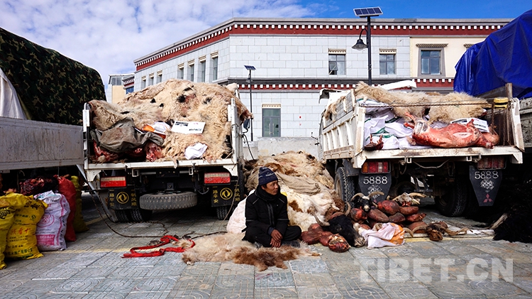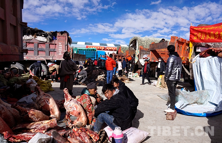 展銷會(huì)開幕前一天,雙湖縣巴嶺鄉(xiāng)格拉俄?xiàng)澊迥撩衽偙愫屯閭凃?qū)車300余公里趕到了色尼區(qū)。雙湖縣巴嶺鄉(xiāng)的旺色達(dá)瓦告訴記者,此次巴嶺鄉(xiāng)組織了4輛大貨車、2輛農(nóng)用車、1輛皮卡車裝載了價(jià)值40多萬元的牛羊肉參加展銷會(huì)。