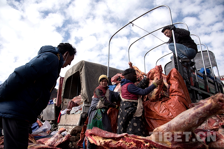 中國(guó)西藏網(wǎng)訊 12月的藏北高原,即使太陽高懸,氣溫已是零下幾度甚至十幾度。在海拔4500米的西藏自治區(qū)那曲市色尼區(qū)物流園區(qū)農(nóng)貿(mào)市場(chǎng),天寒地凍并未阻止人們外出,這里依然車水馬龍、人頭攢動(dòng)。